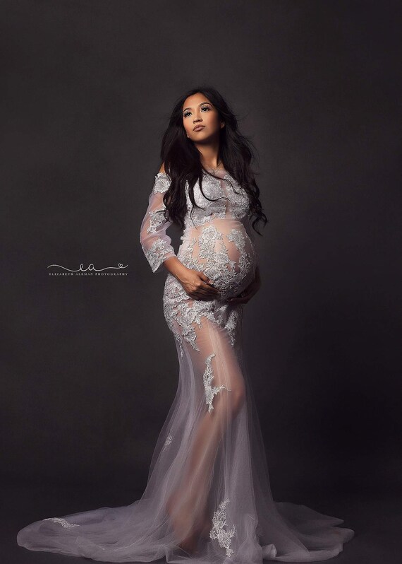 Luxury Embroidered Tulle Maternity Gownlace Mash Maternity Etsy