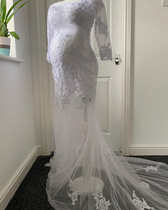 Luxury Embroidered Tulle Maternity Gownlace Mash Maternity Etsy Ireland
