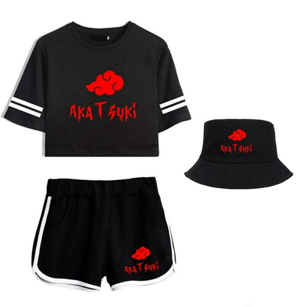 Taicanon Naruto Crop Top And Shorts Anime Akatsuki Outfits Uchiha Tops Shirt And Shorts Set Manga Tshirts Tracksuits For Women 3 Pieces Black 1 M Walmart Com